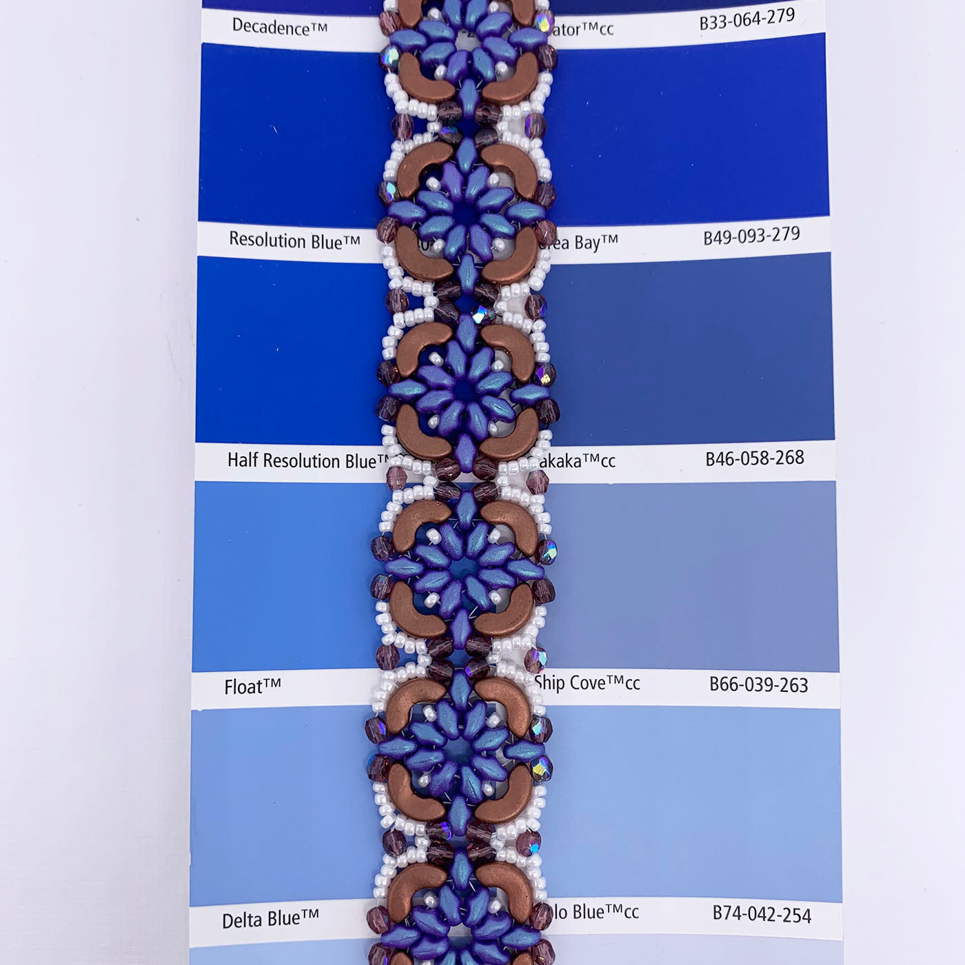 This is a one-of-a-kind bracelet made from French designed beads. A lovely mix of white, blues and bronze colours all blend well and create a truly lovely bracelet.