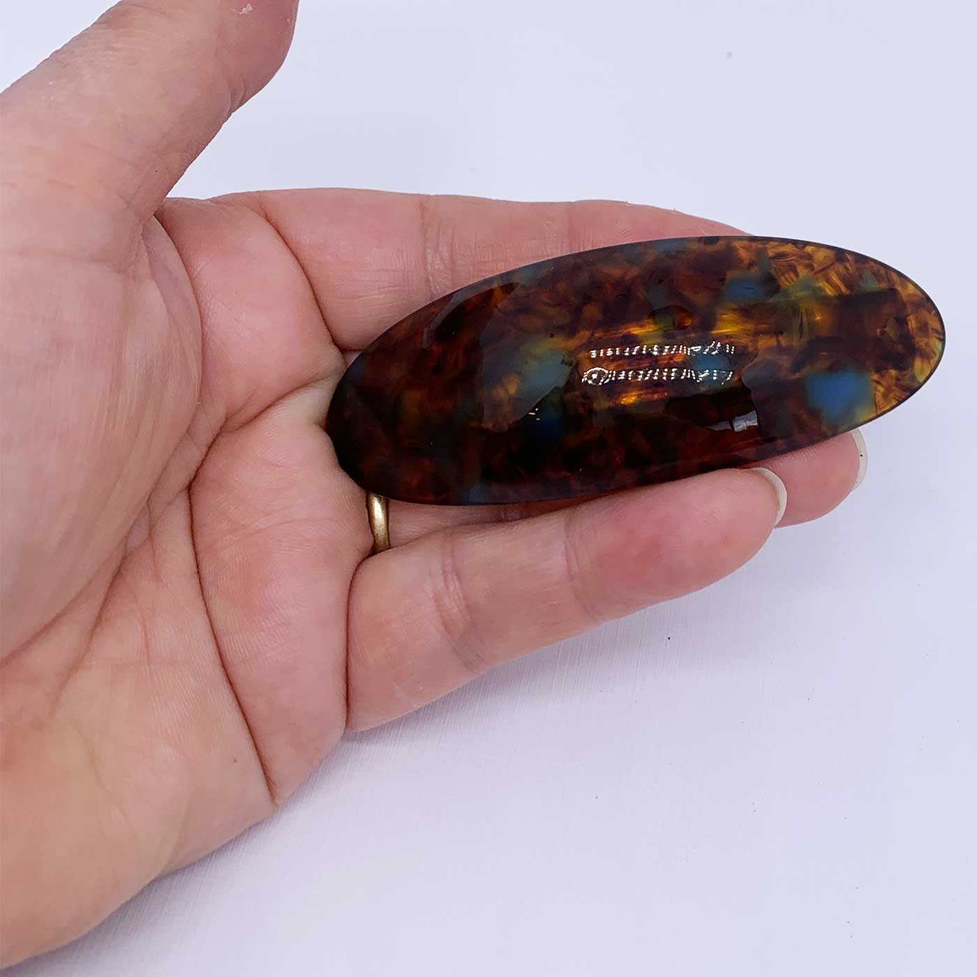 Oval Barrette Hair Clip "Aralin" (Brown-Blue)