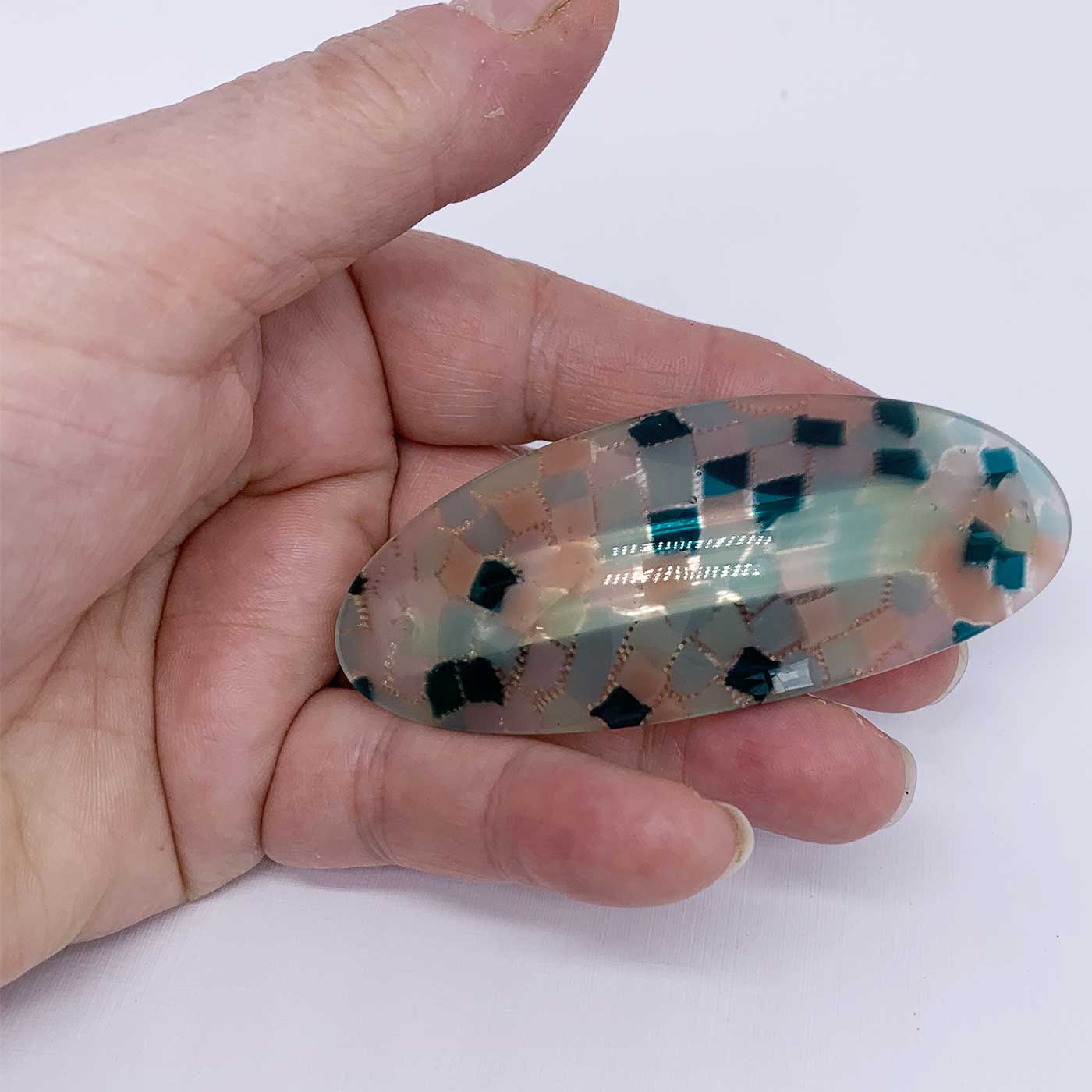 Oval Barrette Hair Clip "Aralin" (Green-Pink)