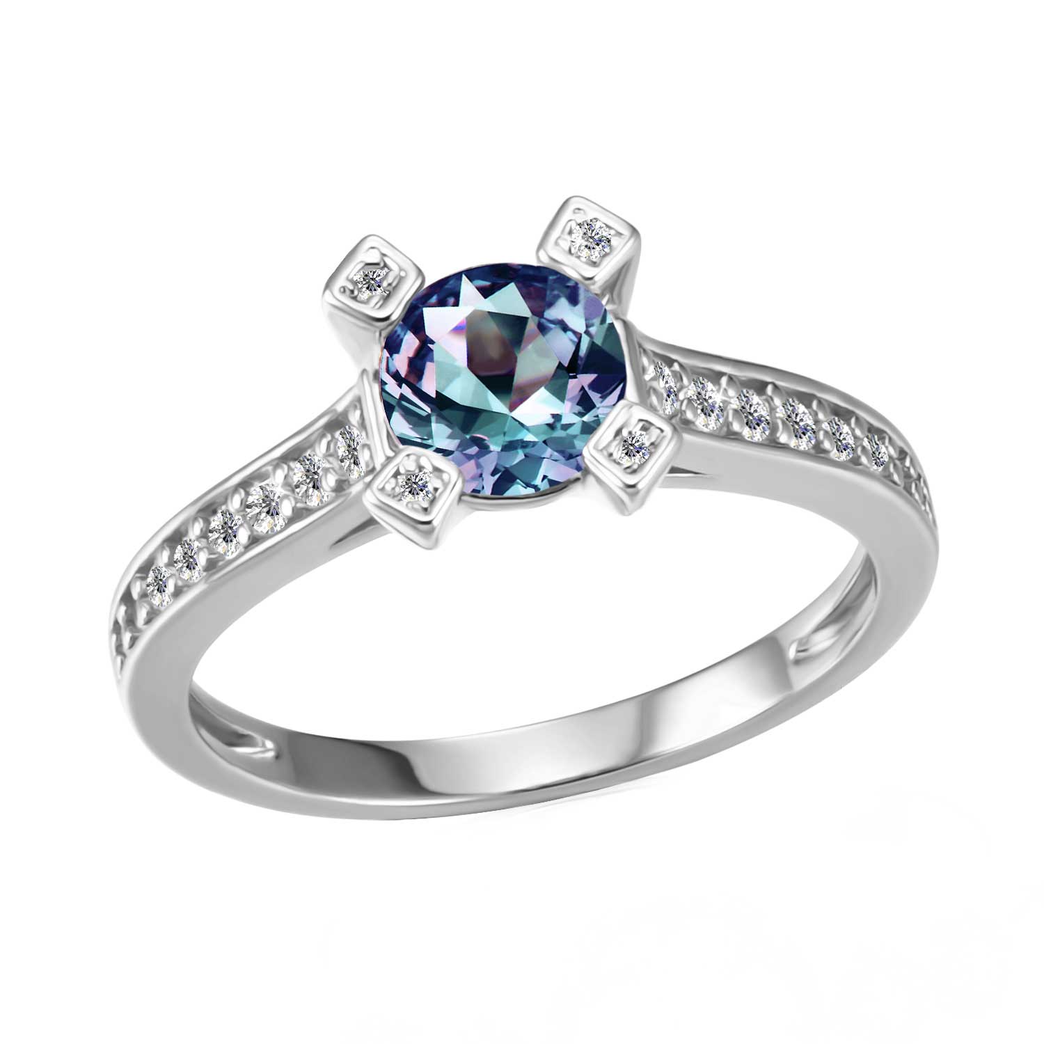 Gorgeous engagement or dress ring with a showy Alexandrite stone as the centrepiece.